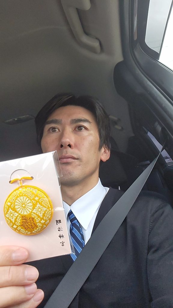 明治神宮の必勝お守り。必ず勝ちます。勝ち続ける努力を致します。
