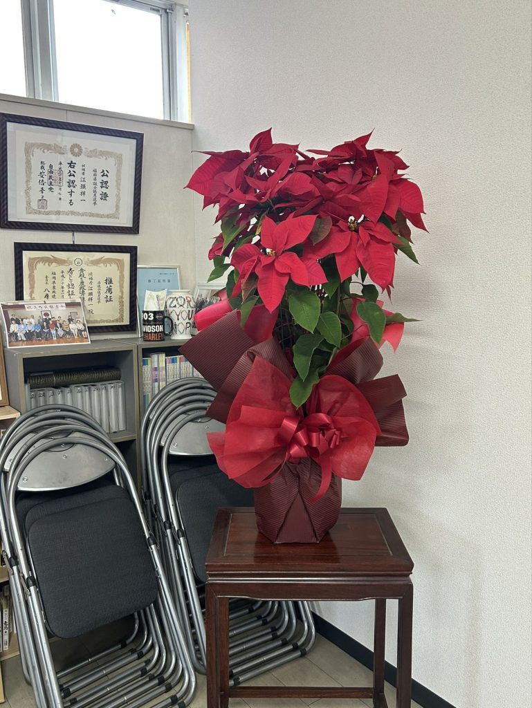 事務所に大きなポインセチアを置きました!
