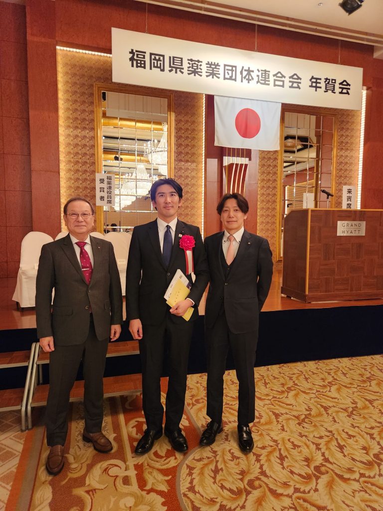 福岡県薬剤師会、小田会長(右)、高木副会長(左)との一枚。いつも、お力をお借りするばかりですね、私もお力になれるように精進致します。